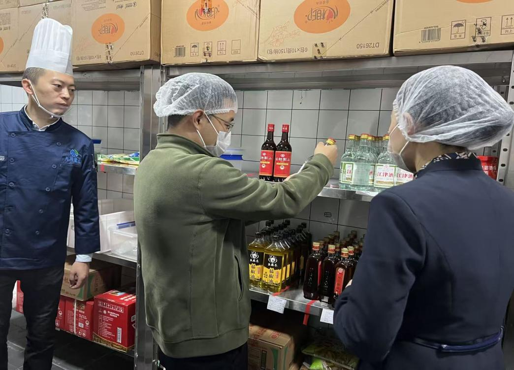 此次检查坚持“监督与服务并重、检查与指导结合”的原则,围绕食材采购、储存管理、加工流程、设备清洁、人员操作及制度执行等重点环节,进行了全面细致的查验和评估。检查组先后深入食堂后厨、仓储库房、清洗消毒等重点区域,现场查看食品食材出入库日志登记,询问后厨操作流程与人员管理情况,对食品保质期、餐具清洗消毒、后厨卫生等进行检查,对检查发现的问题,现场提出整改意见。